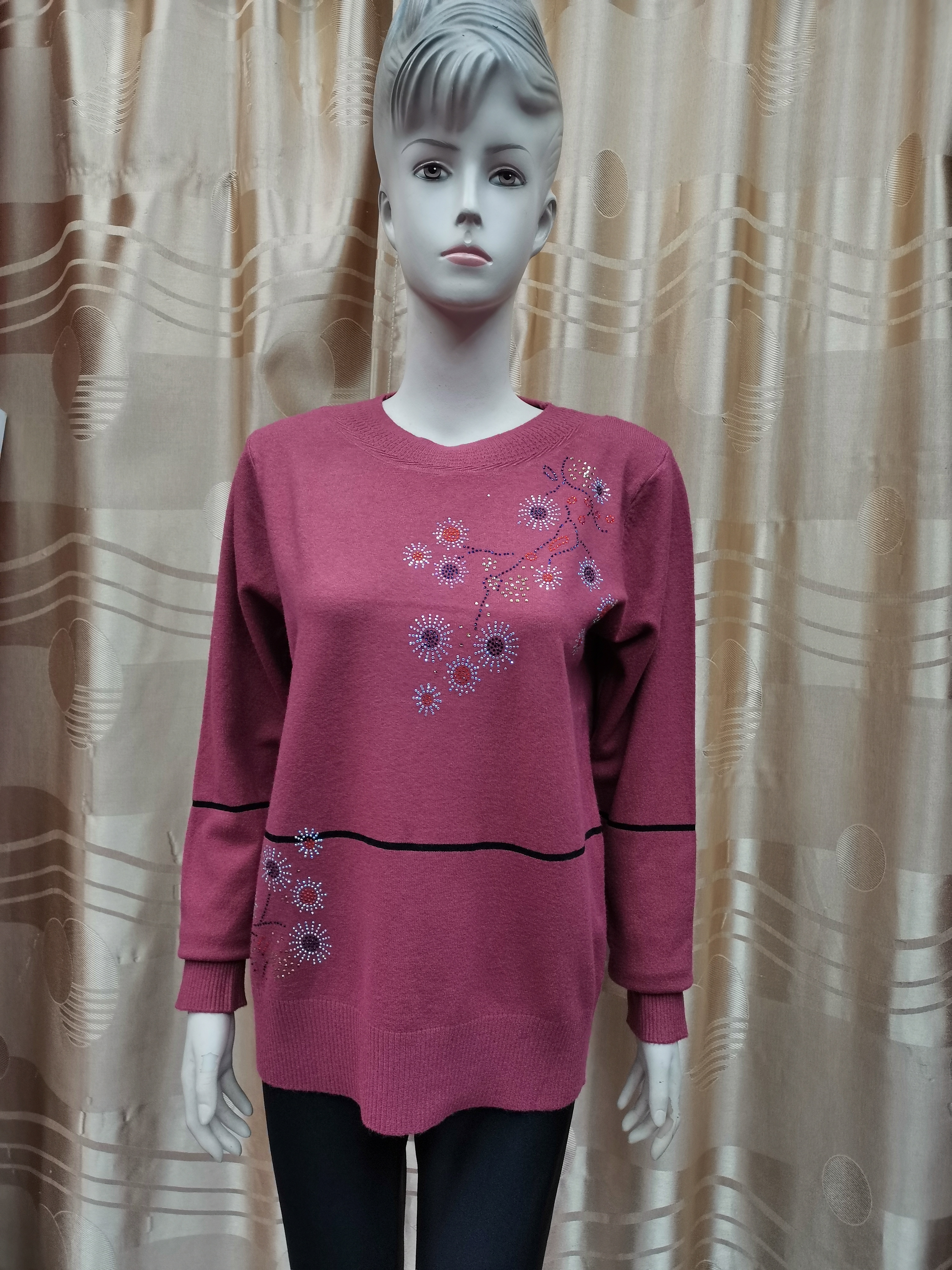 包心纱套头亮钻针织衫
