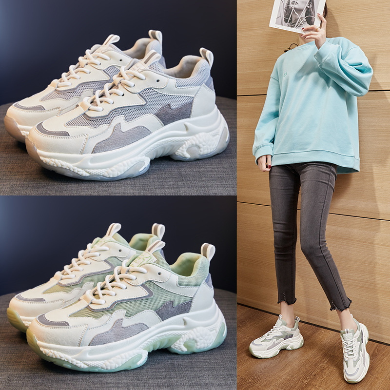 老爹鞋女2021春季新款温州女鞋真皮加绒鞋子女休闲鞋潮厚底运动鞋