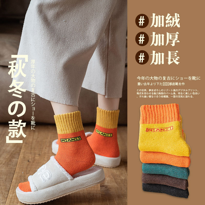 袜子女中筒袜加厚加绒女毛巾袜睡眠袜月子袜纯棉ins潮秋冬季保暖