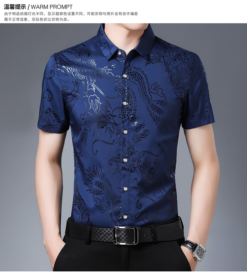 卡旗盾薄款短袖衬衫男中年休闲短袖潮流帅气韩版爸爸装印花衬衣男