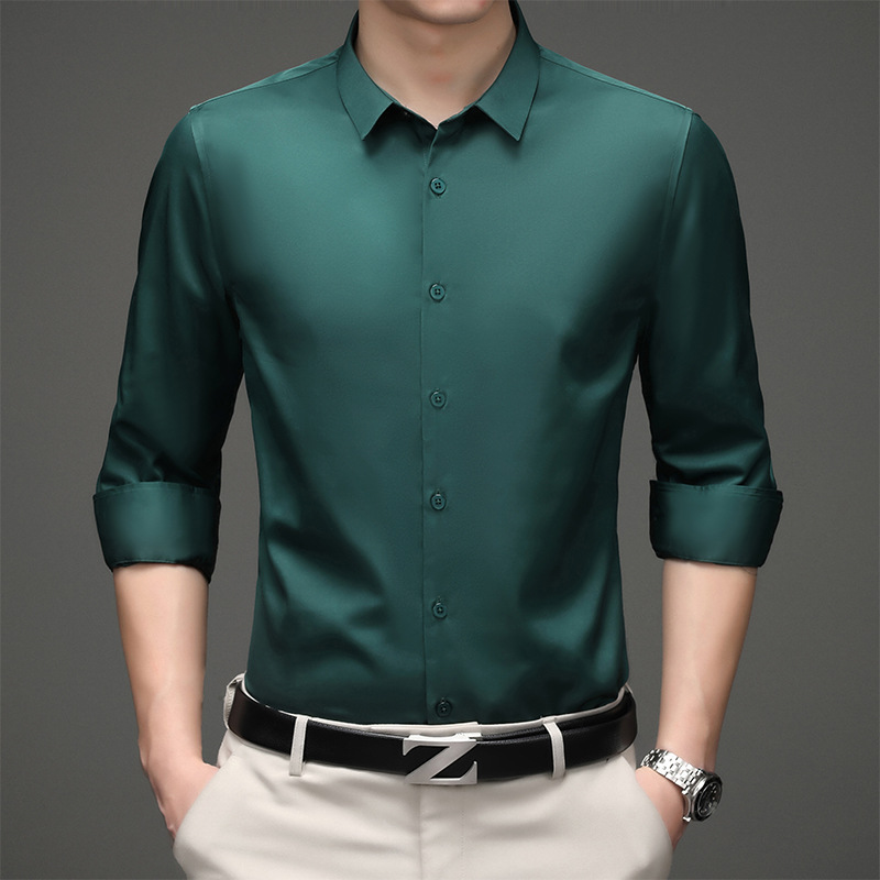 商务男装免烫衬衣纯色韩版修身光泽透气弹力批发订LOGO长袖衬衫男