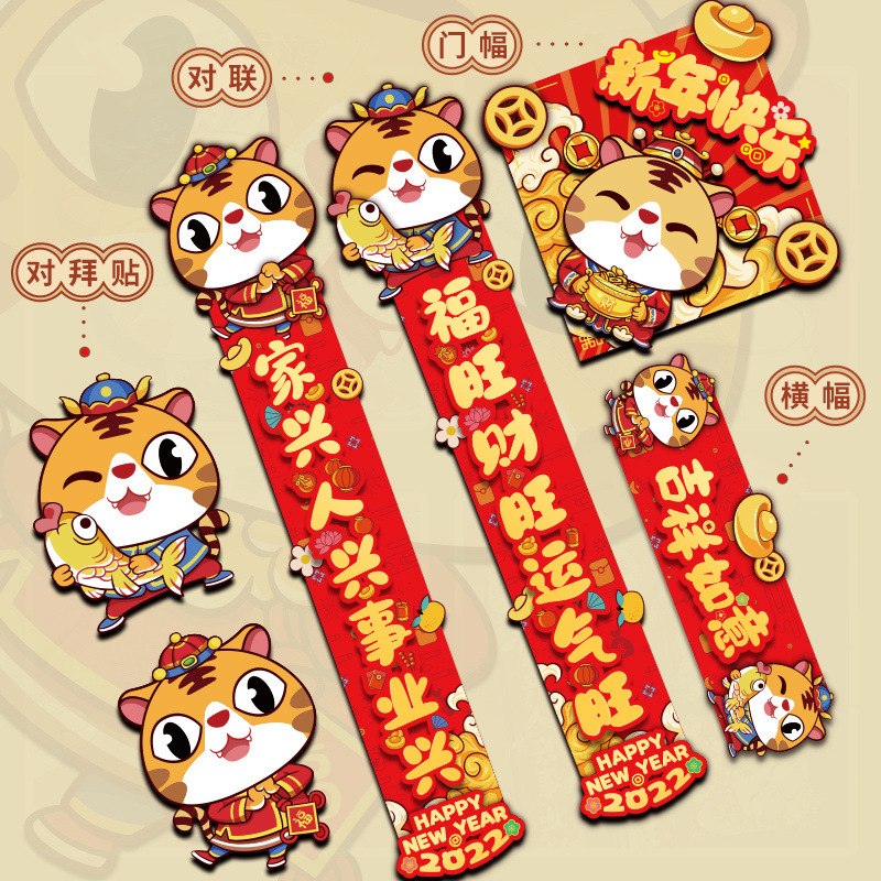 2022虎年春联礼盒装新款卡通对联企业礼品福字贴春节大礼包对联