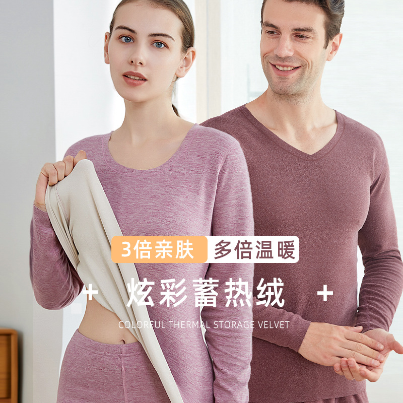 无痕保暖内衣套装男士德绒情侣款秋衣秋裤女加绒打底棉毛衫羊绒冬