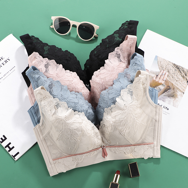 春夏新款大码女士内衣大胸显小聚拢收副乳薄款无钢圈蕾丝文胸胸罩