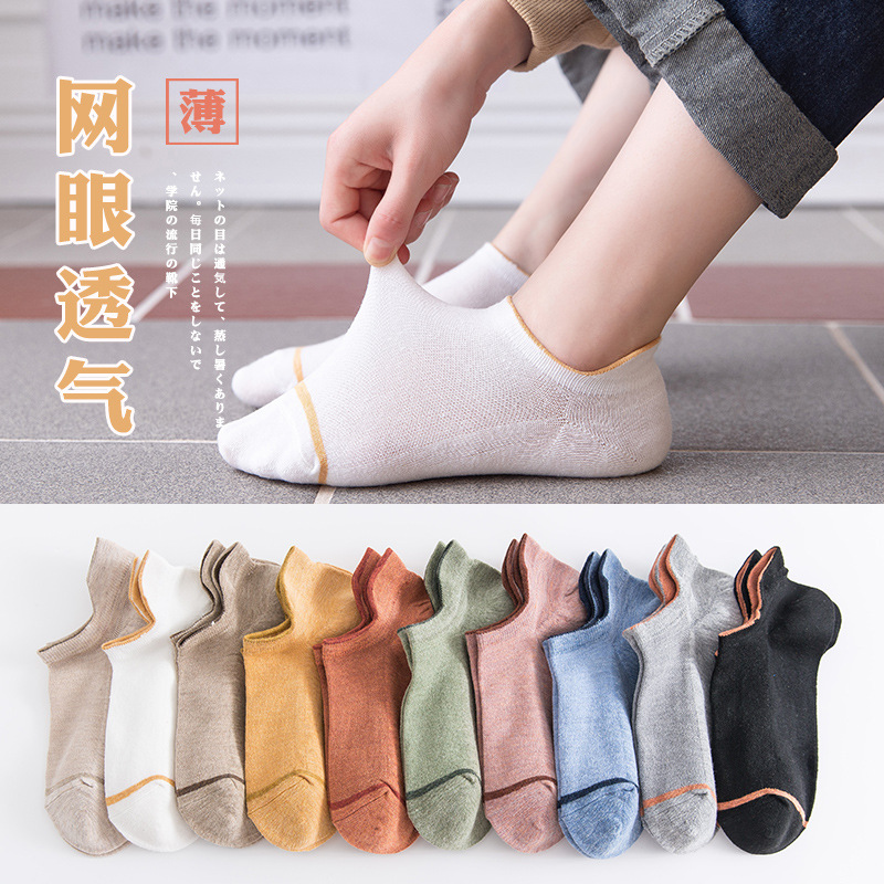 袜子女船袜春夏季短袜网眼透气浅口女士袜纯色棉袜日系ins糖果色