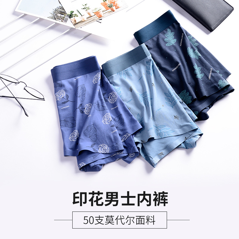 新款印花无痕男士内裤 透气U型囊袋中腰平角裤四角裤现货厂家直销