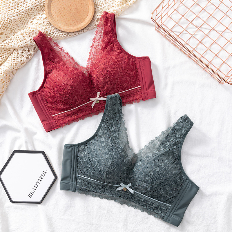 背心式无钢圈文胸罩小胸加厚聚拢上托收副乳调整型性感蕾丝内衣女