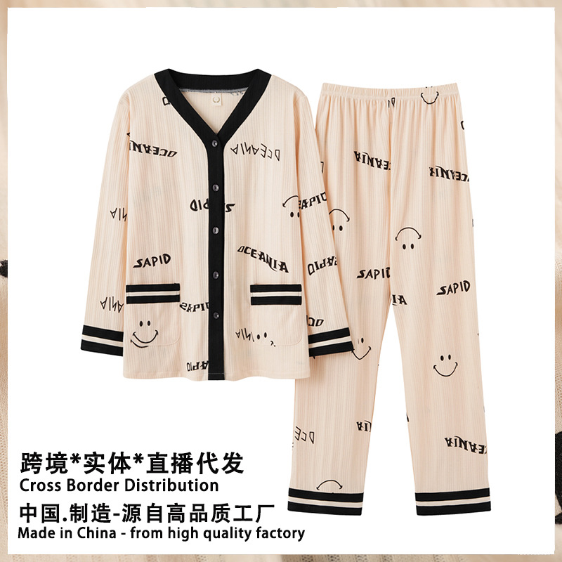 2021年秋季新款女士纯棉睡衣长袖家居服全棉宽松可外穿青年V领ins