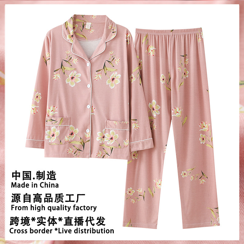 春秋季睡衣女长袖长裤妈妈优雅中年妇女家居服薄套装源头厂家直销