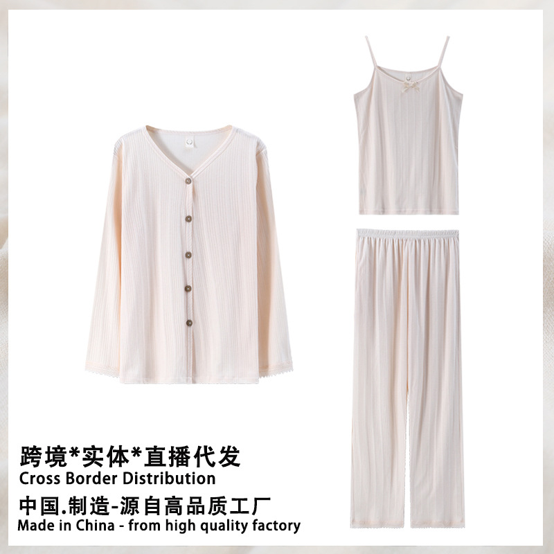 小红书推荐女三件套吊带长裤性感春秋背心睡衣长袖开衫套装家居服
