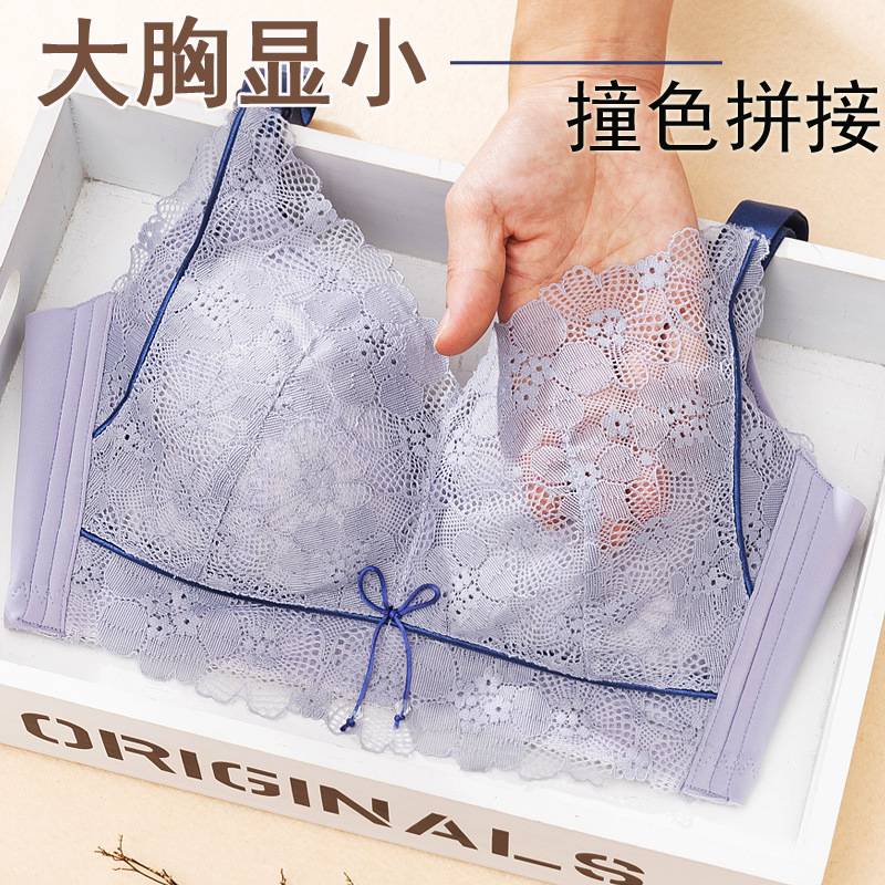 无钢圈撞色拼接大码内衣女士薄款聚拢调整型全罩杯大胸显小文胸罩