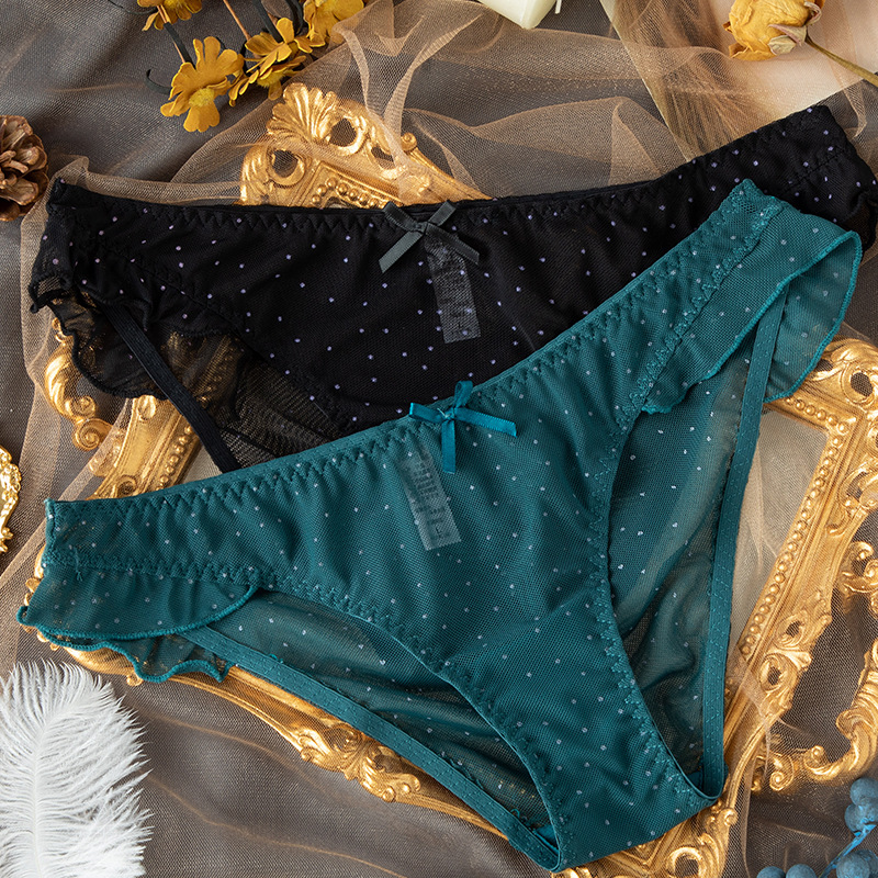 夏季波点性感透气木耳边低腰女士三角裤透明网纱激情诱惑丁字裤T
