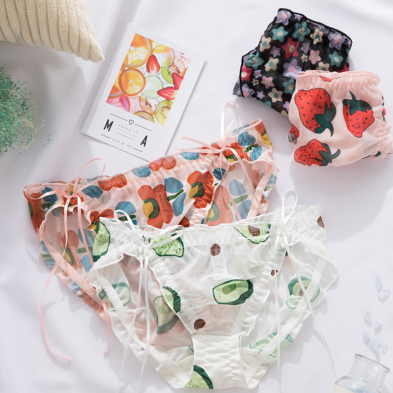 新款韩国泫雅风印花内裤女 蕾丝网纱低腰三角裤透气无痕女士内裤