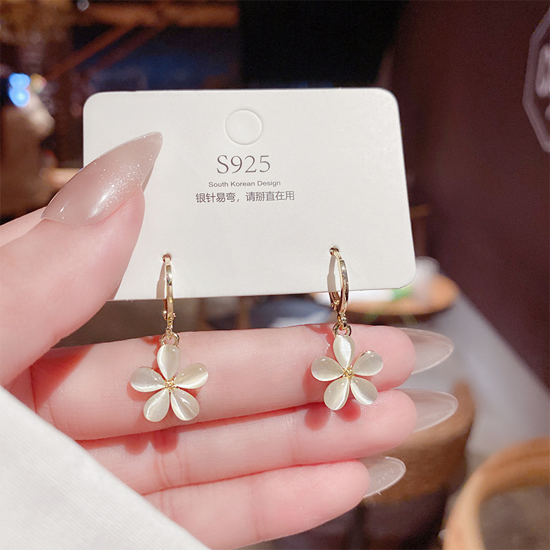 韩国东大门新款猫眼石花瓣耳环个性简约清新耳饰气质职场C型耳夹