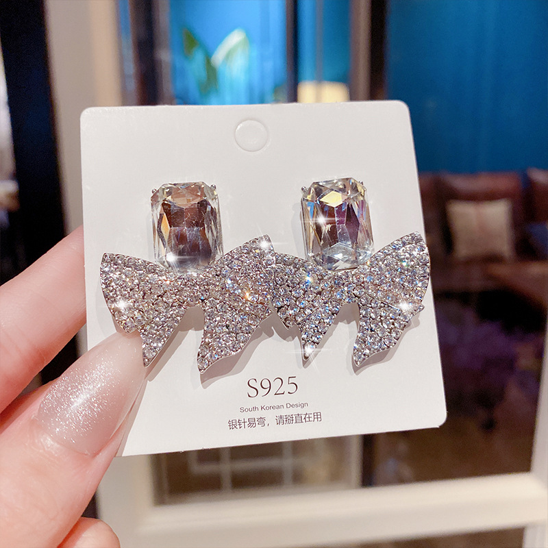 名媛轻奢高级感蝴蝶结耳环2021年新款潮满钻水晶耳钉欧美风耳饰女