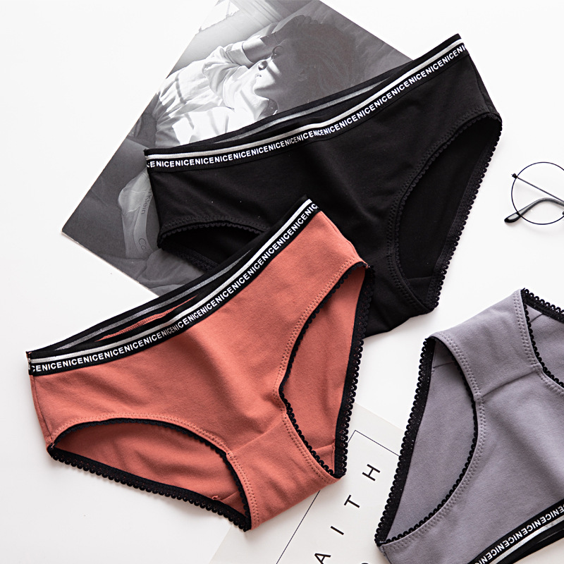 女士棉质无痕透气内裤 中腰银边字母腰头少女三角内裤短裤防走光
