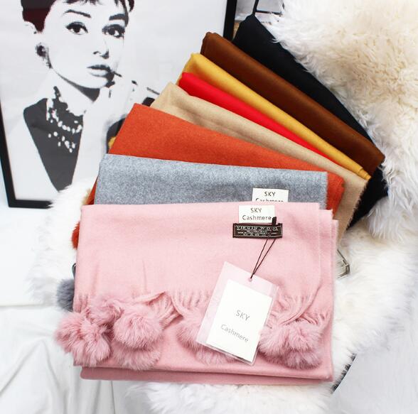 新款羊绒拉毛披肩 可爱兔毛球果果围脖 加厚情侣围脖