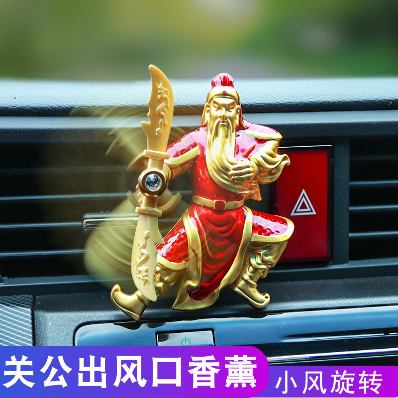 关公车载香水汽车空调出风口车用香薰香膏车内用品创意装饰摆件
