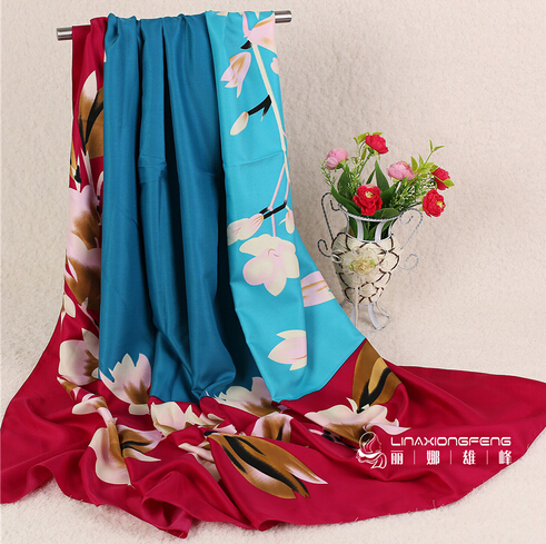 秋冬新款欧美风印花仿真丝缎面 丝巾 女方巾