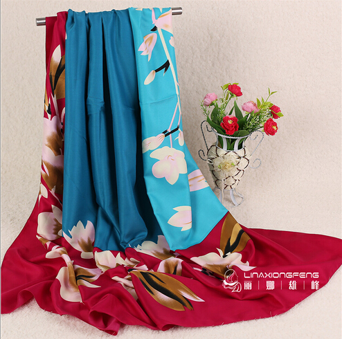 秋冬新款欧美风印花仿真丝缎面丝巾 女方巾