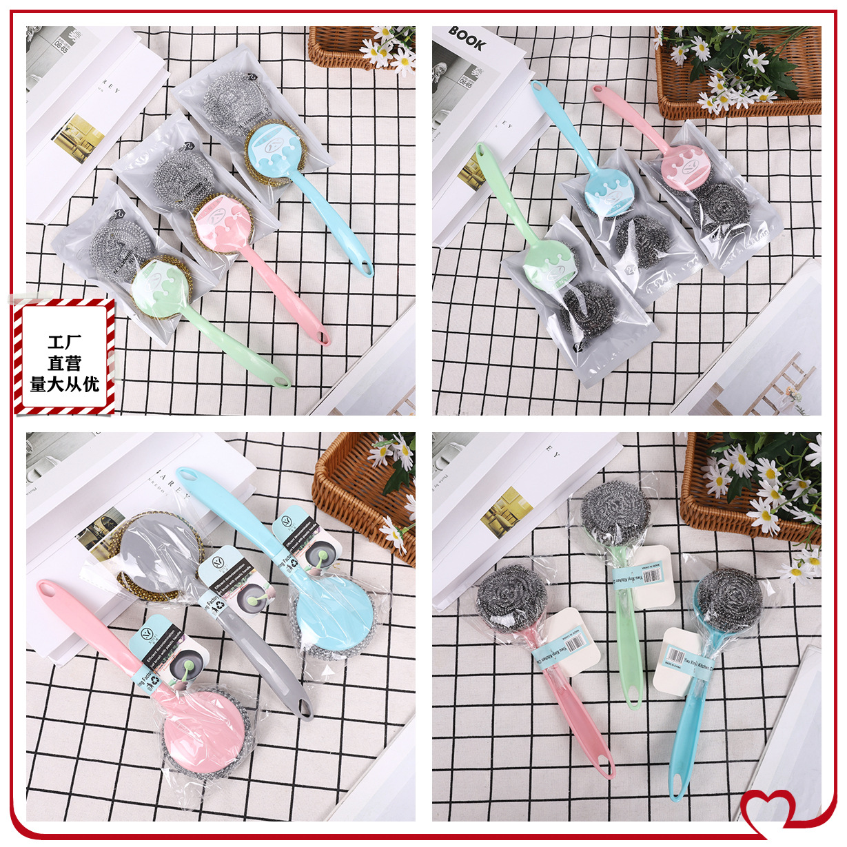 刷碗刷锅工具 厨房清洁 钢丝球 金银丝清洁球带手柄 厂家直供批发