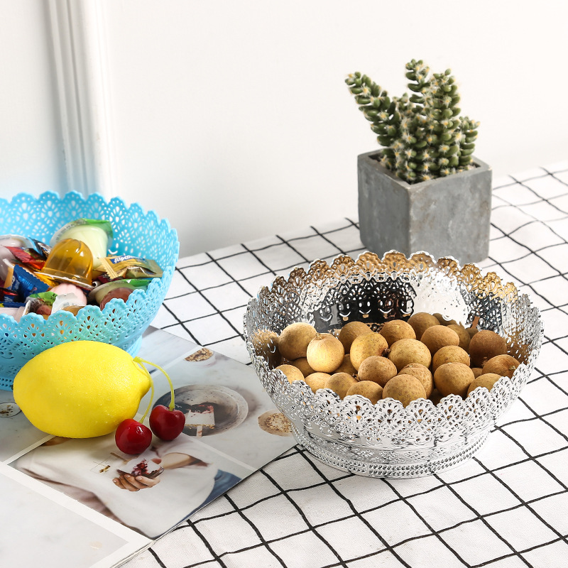厂家直销创意家用客厅零食干果盘 圆形大容量托盘 塑料镂空水果盘