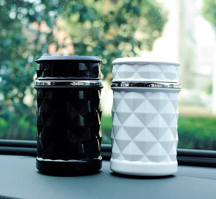 车载新款黑色白色带LED灯多功能钻石烟灰缸