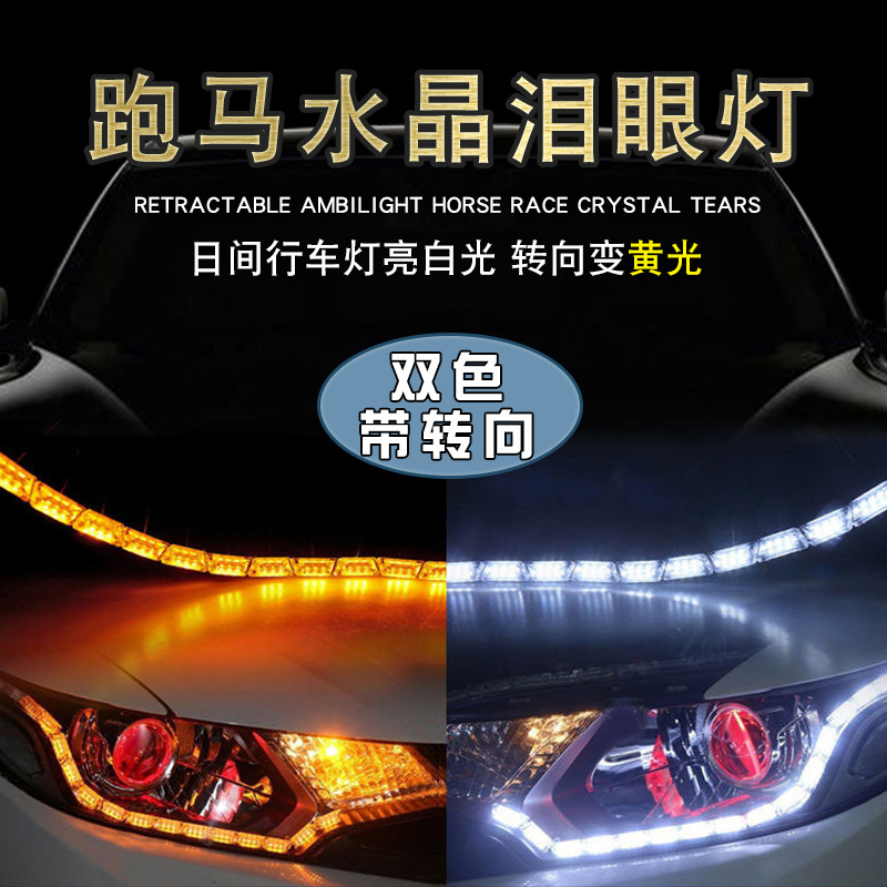 汽车LED水晶泪眼灯 LED跑马灯导光条 双色日行灯伸缩流光转向16灯