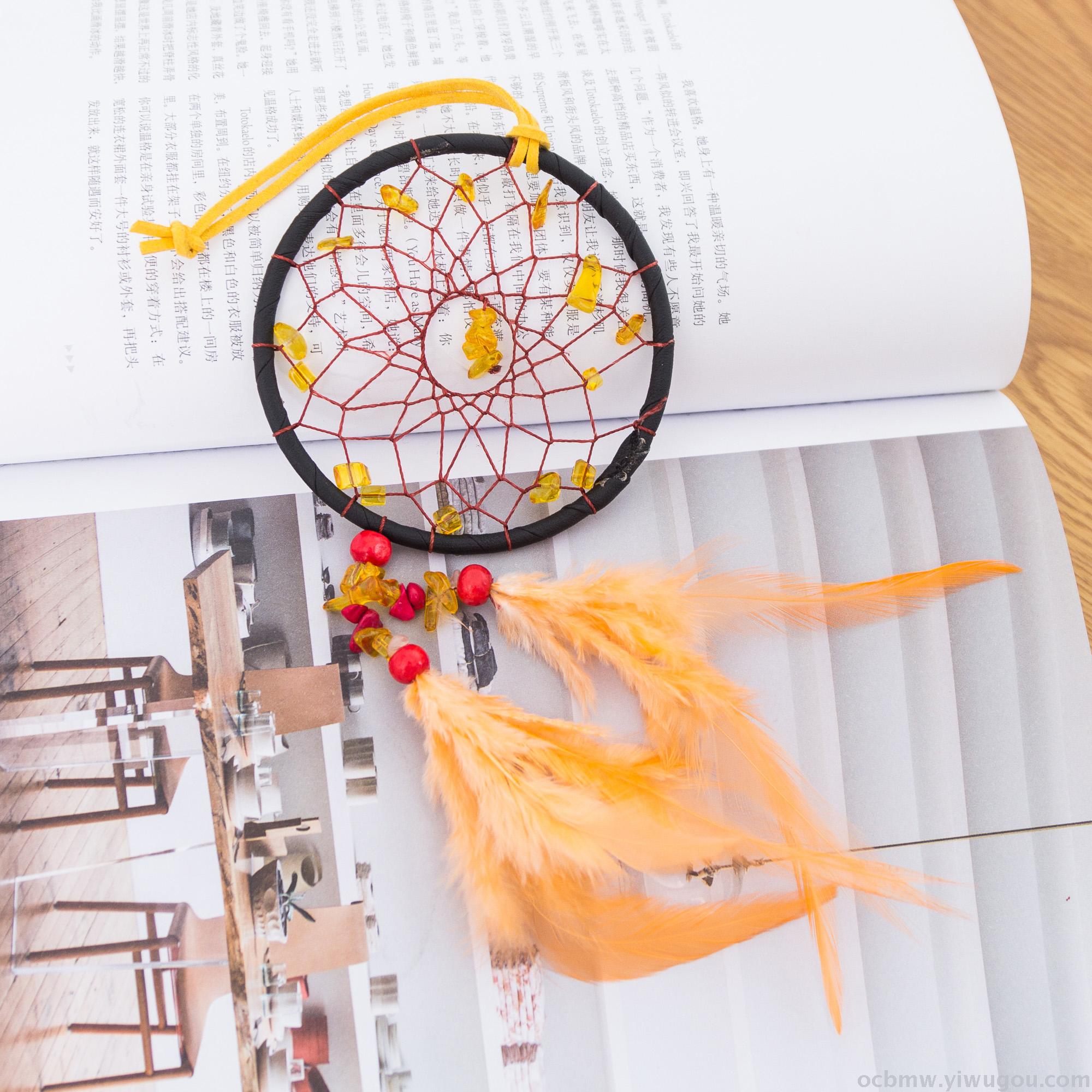 波西米亚风捕梦网挂饰 天然碎石汽车挂件捕梦器