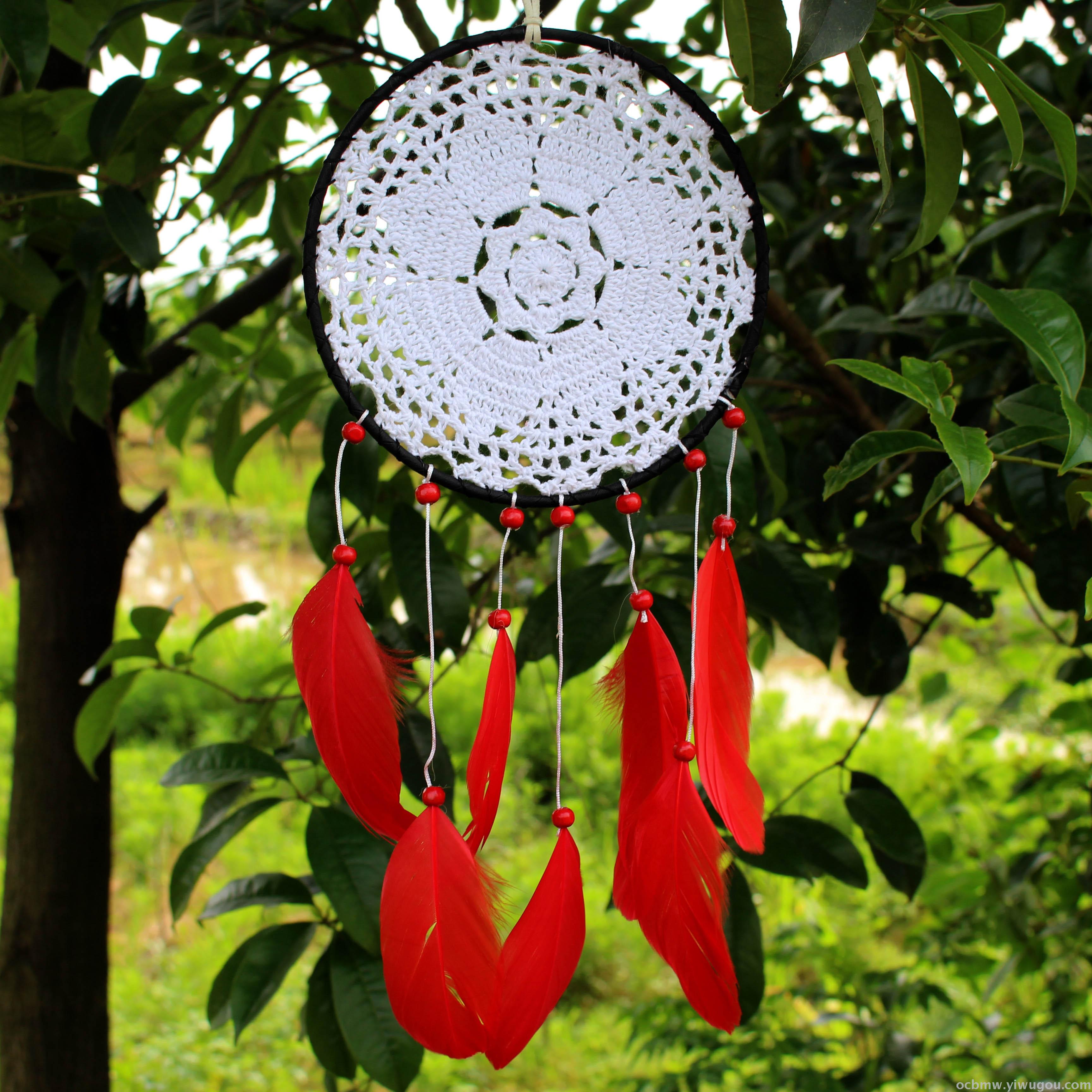 创意新款印第安捕梦网挂饰红色羽毛大瓢捕梦网工厂直供