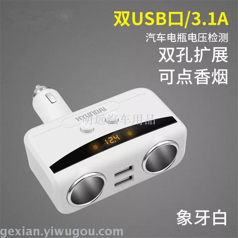 现代带开关一拖二可点烟车载充电器汽车用品