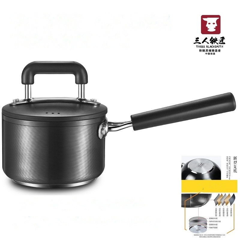 三人铁匠16cm复合底奶锅不粘锅宝宝辅食锅泡面锅婴儿小奶锅