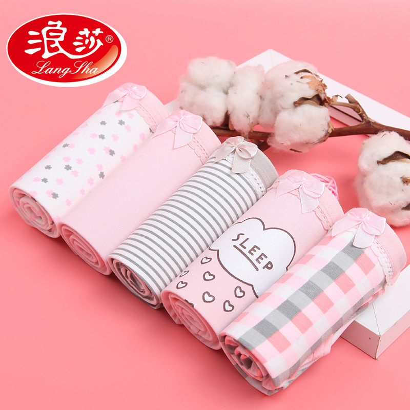 浪莎5条盒装女士纯棉少女性感中腰三角裤无痕棉质内裤淘宝代发