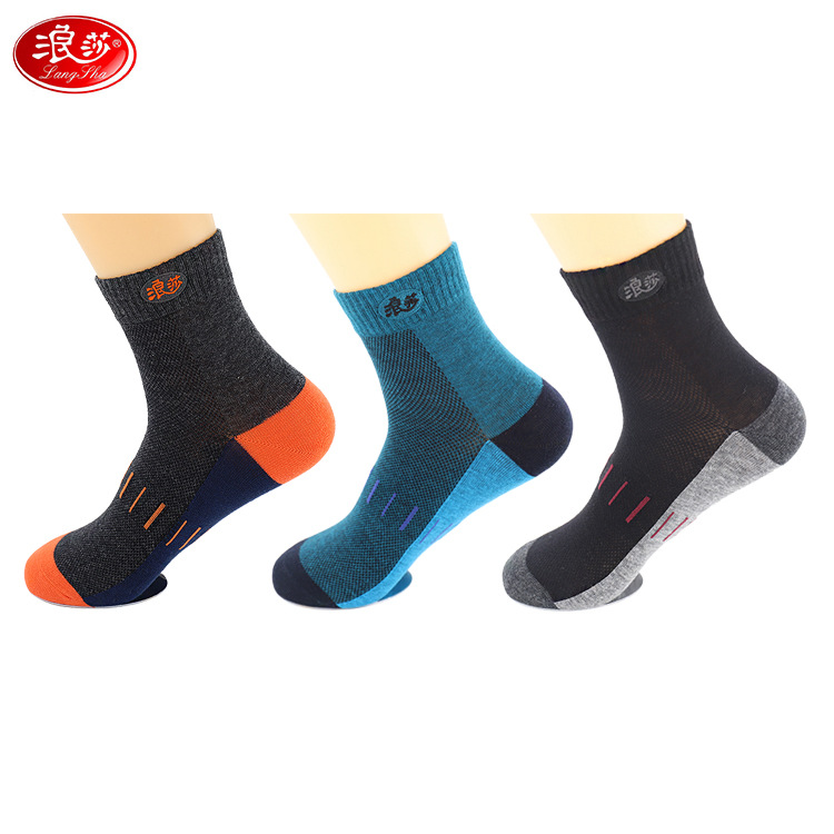 袜子浪莎全棉男士运动袜刺绣款薄中筒袜吸汗透气男袜独立包装批发
