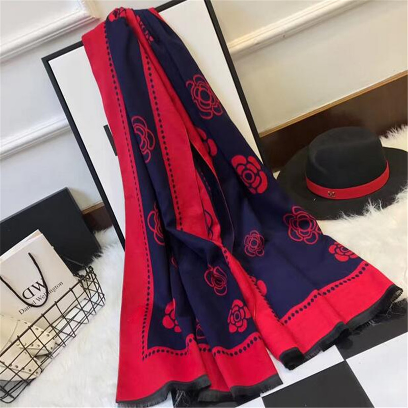 秋冬季新款欧美时尚大牌山茶花仿羊绒空调巾保暖披肩