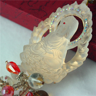 新款 高档磨砂琉璃汽车挂件 镶钻汽车内饰 吉祥平安 厂家直销