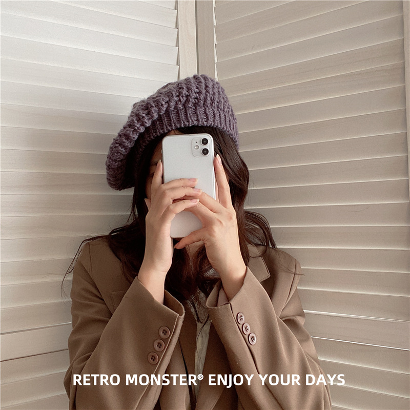 韩国新款毛线针织帽子女休闲百搭画家帽包头贝雷帽子日系文艺帽子