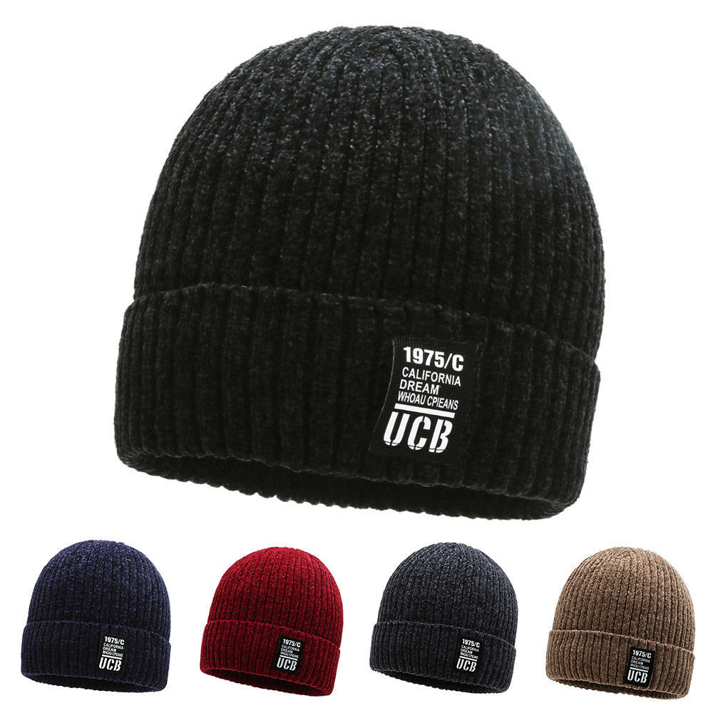 秋冬户外保暖雪尼尔针织帽加绒防风护耳套头帽男士百搭休闲毛线帽