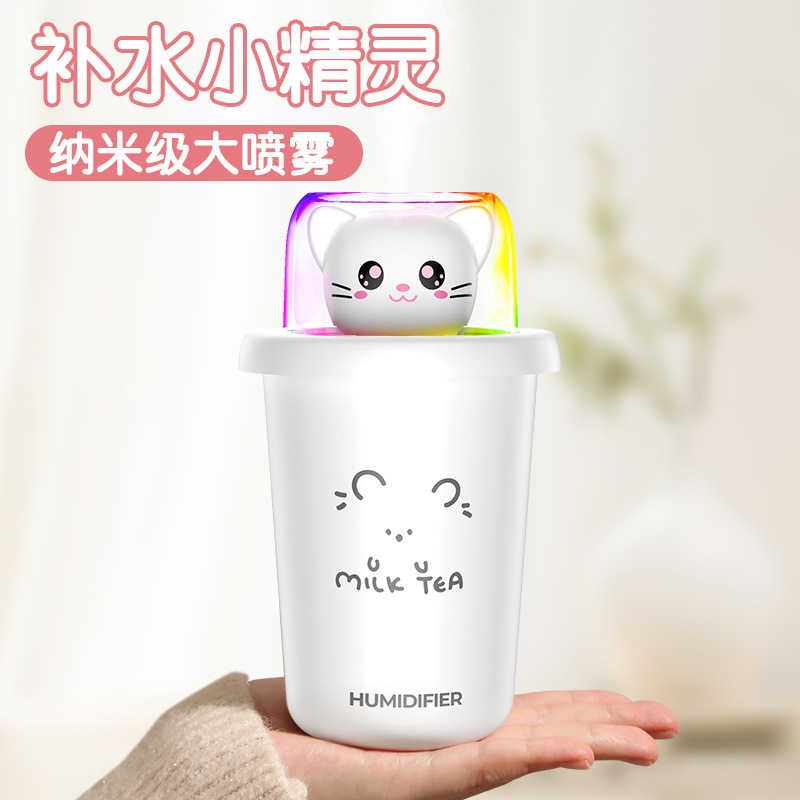 小熊usb七彩萌宠加湿器 创意车载迷你香薰机 电池款跑马灯加湿器