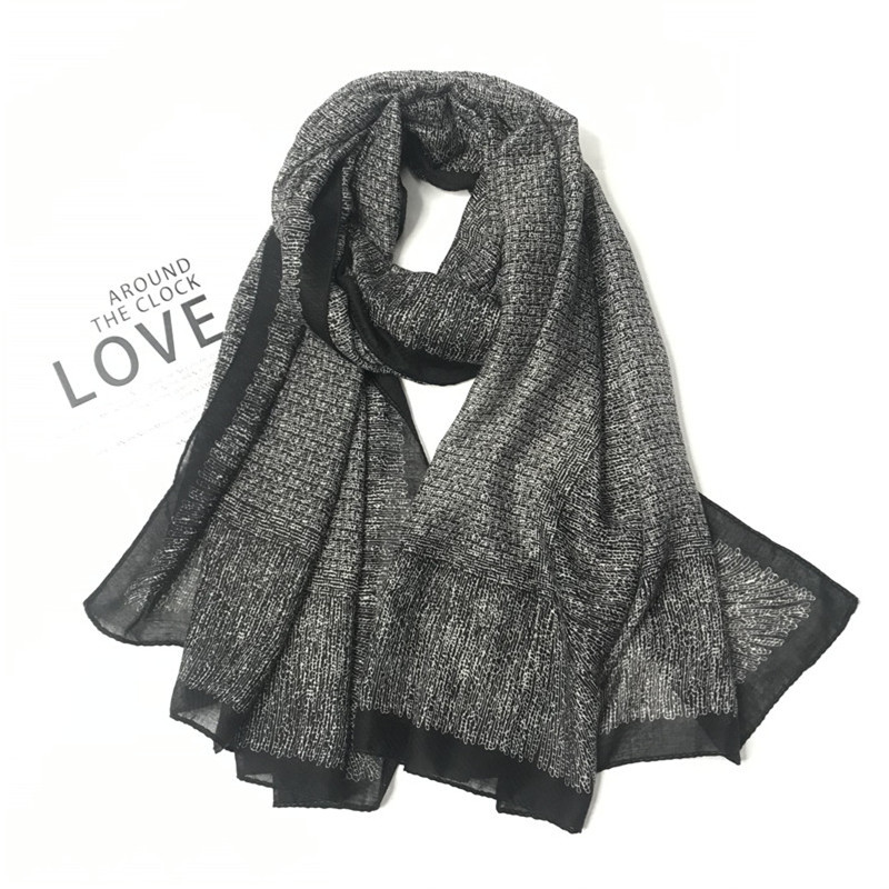 跨境专供 春夏季黑色蕾丝巴厘纱印花新款棉麻围巾女现货厂家直供