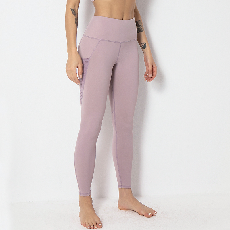 跨境供应亚马逊ebay口袋瑜伽裤女镂空拼接提臀紧身运动跑步健身裤