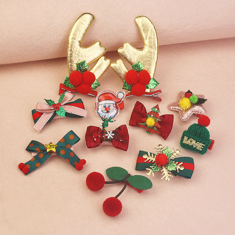 圣诞节发卡儿童发夹鹿角头饰圣诞老人饰品女童发饰宝宝圣诞节套装