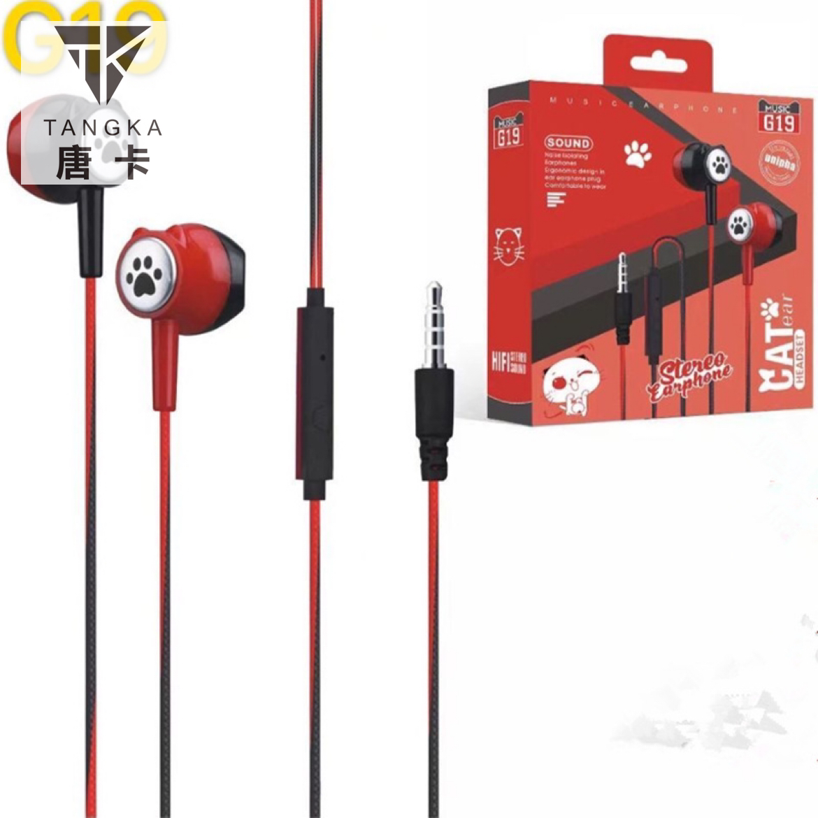 G19新款卡通猫爪儿童耳机入耳式线控双色线马卡龙礼品音乐游戏耳机