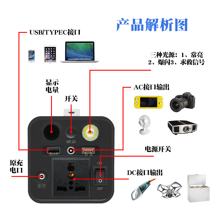 【厂家直供】 大功率300W储能电源 户外便携式多功能移动电源