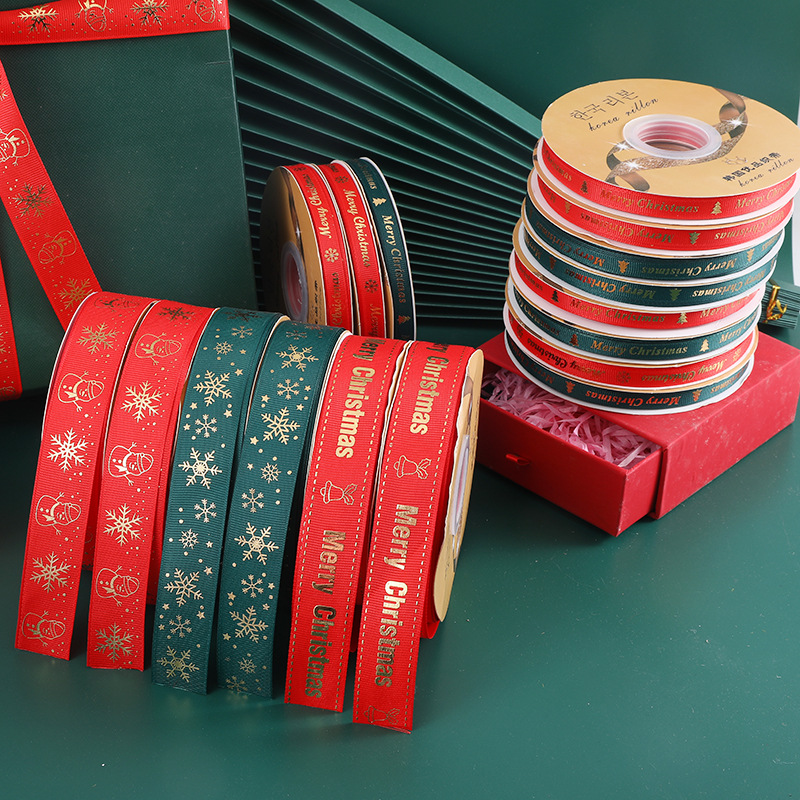 跨境新品圣诞丝带蝴蝶结烫金印刷彩带包装提花织带圣诞节缎带批发
