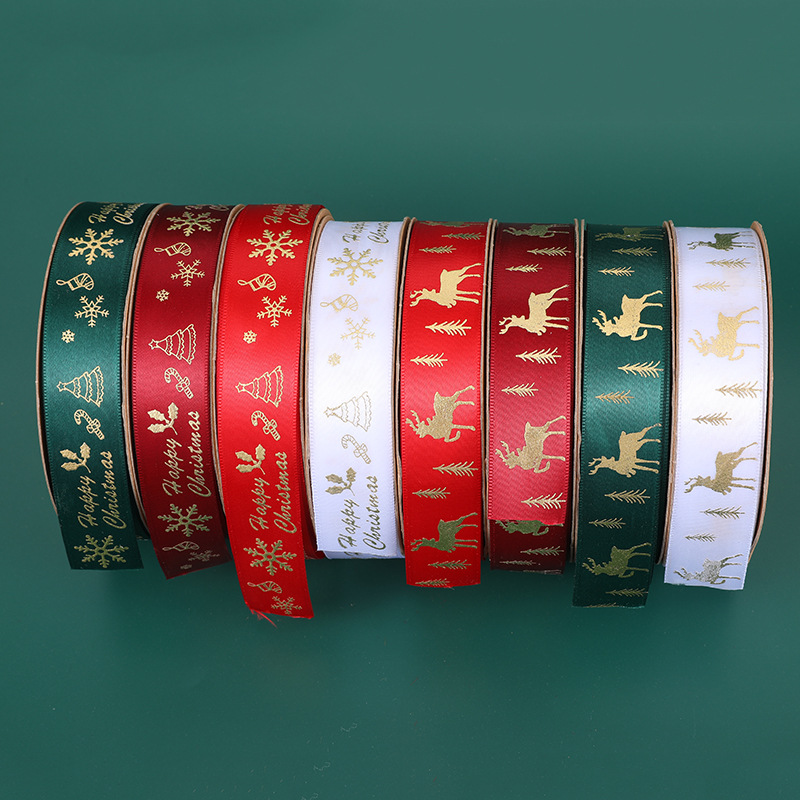 跨境圣诞丝带蝴蝶结烫金印花彩带蛋糕包装织带提花礼品盒缎带批发