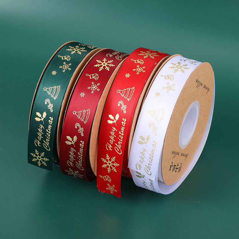 跨境圣诞丝带蝴蝶结蛋糕包装彩带烫金印刷圣诞节织带提花缎带批发