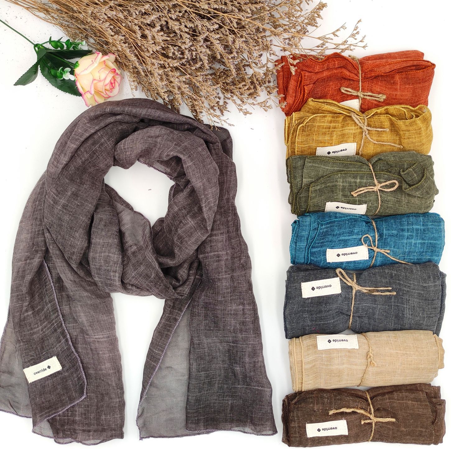 春秋平纹现货通用麻料冬季围巾女装饰保暖长巾棕色条纹丝巾