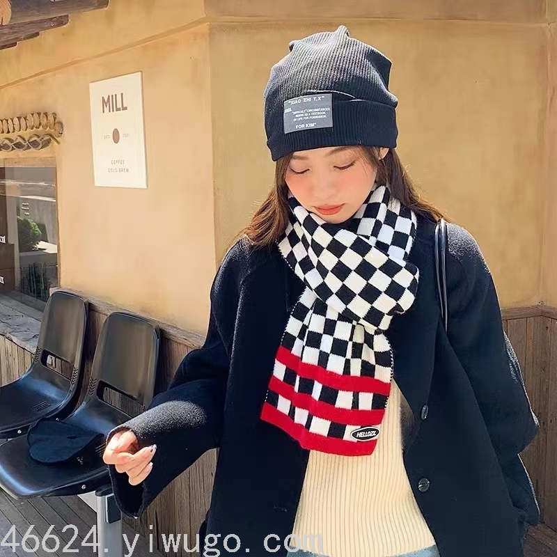 2021网红棋盘格子围巾女秋冬季新款百搭保暖针织围脖女长款日系潮