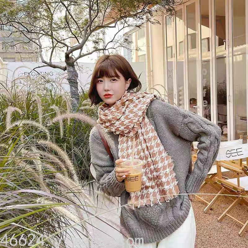 21小众云朵千鸟格围巾女冬季细腻感立体柔软保暖披肩加厚百搭围脖